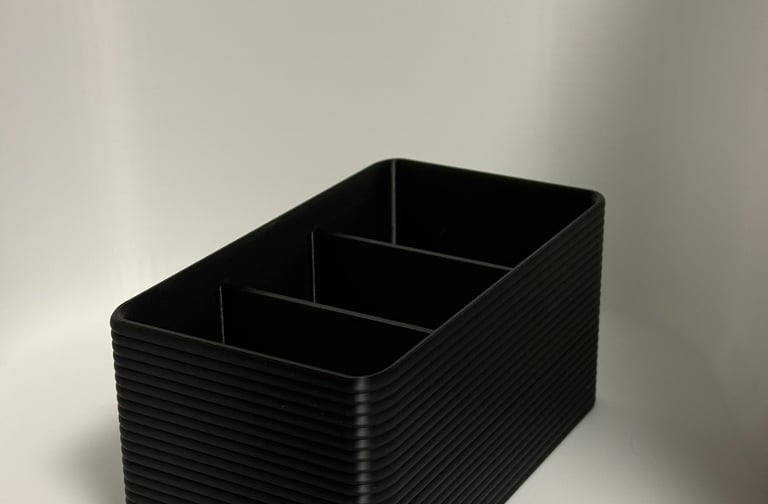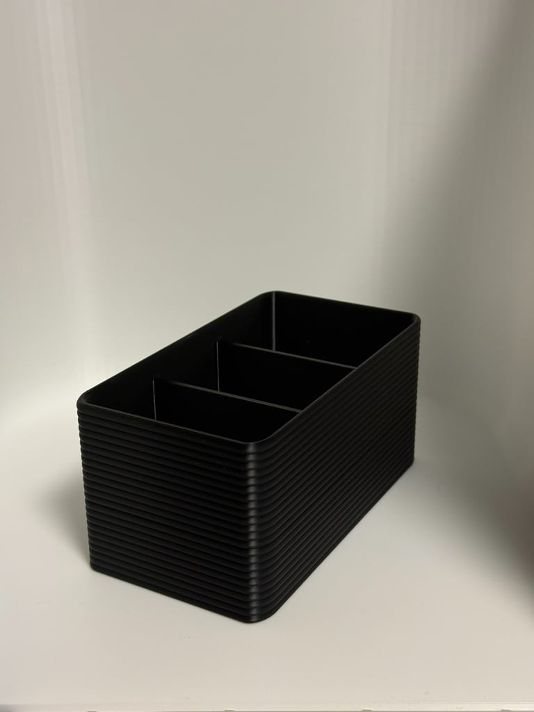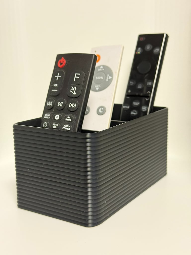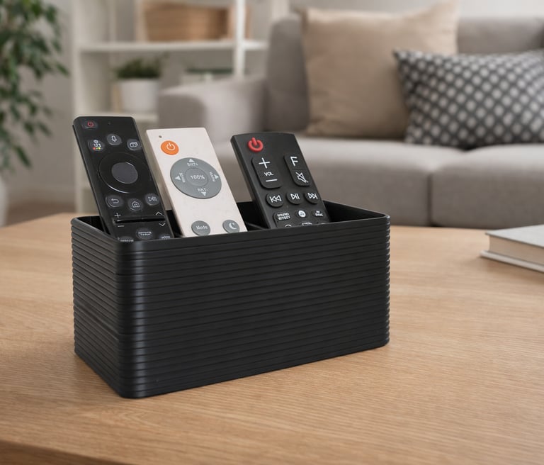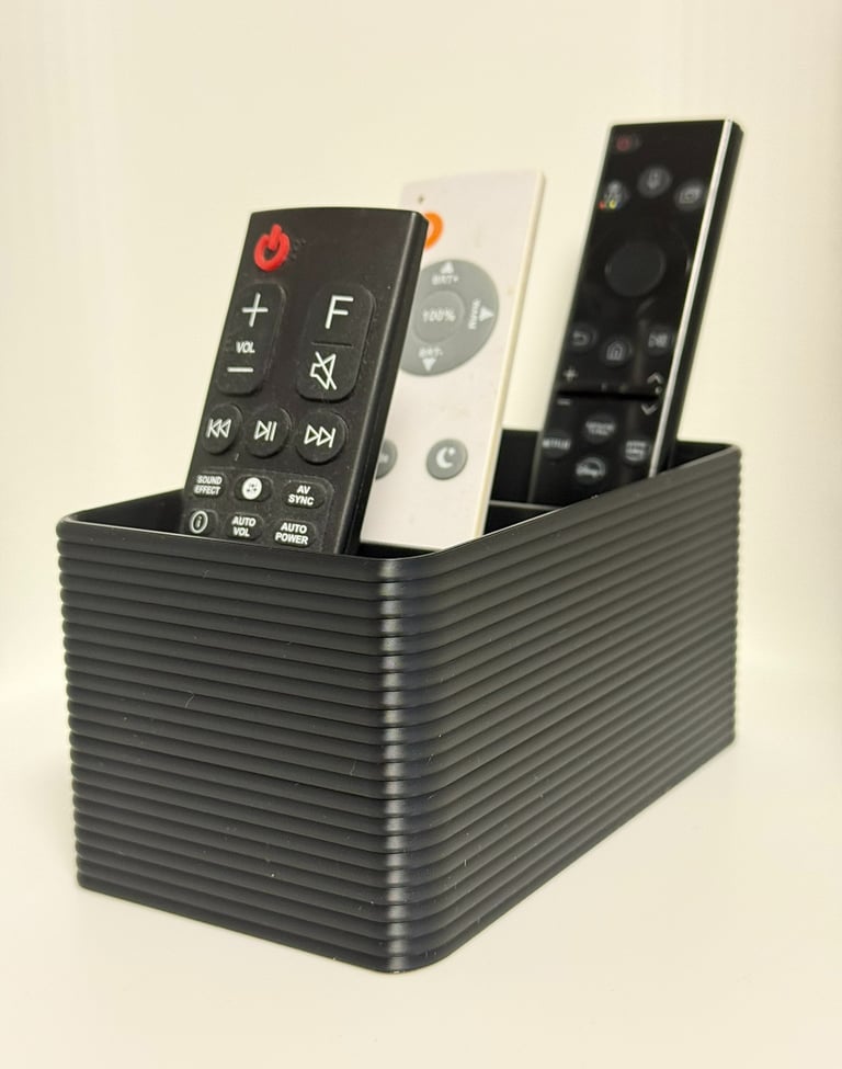 Tämä moderni ja tyylikäs kaukosäädinteline auttaa pitämään olohuoneesi järjestyksessä. Kolme lokeroa tarjoavat selkeän paikan kaikille kaukosäätimille – TV:lle, äänentoistolle ja valoille.